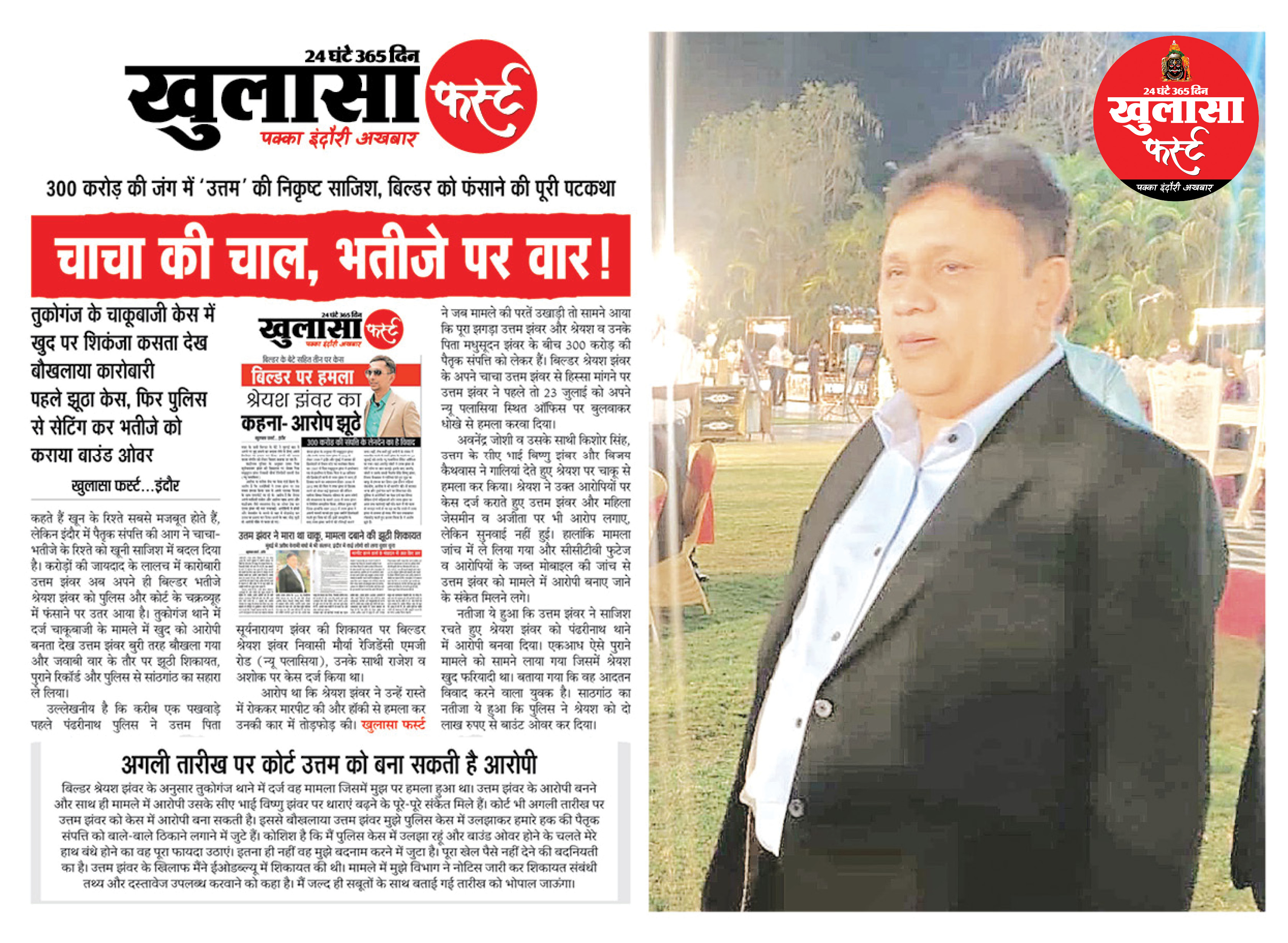 जुलाई माह में बिल्डर उत्तम झंवर पर हुए हमले के मामले में तुकोगंज थाने के थानेदार की विधिक समीक्षा रिपोर्ट खुलासा फर्स्ट के हाथ लगी है। इसमें थानेदार ने 13 बिंदुओं पर अपनी समीक्षा दी है। इससे कारोबारी उत्तम झंवर की दर्ज केस में आरोपी बनने की संभावना बढ़ गई है।