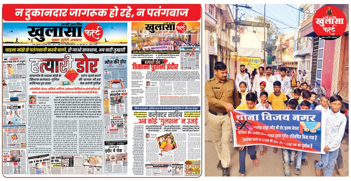 विजय नगर पुलिस ने जानलेवा चाइनीज मांझे के प्रति रैली निकाल बच्चों व अभिभावकों को चेताया खुलासा फर्स्ट, इंदौर । शहर के आसमान में पतंग के साथ मौत बनकर उड़ते चाइनीज मांझे को लेकर पुलिस-प्रशासन द्वारा लगा