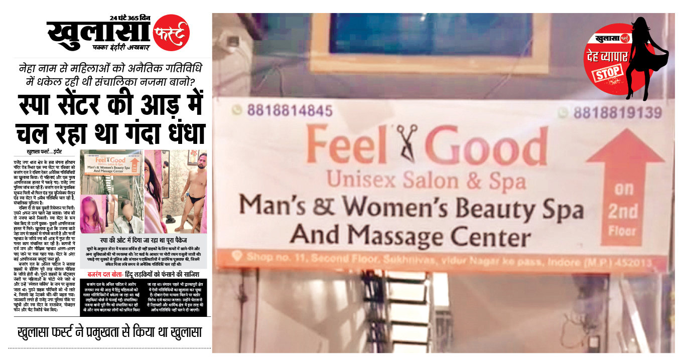 हिंदू संगठन के पदाधिकारियों ने बताया विदुर नगर और द्वारकापुरी क्षेत्र में देह व्यापार के मामले आ रहे हैं। संगठन ने कुछ दिन पहले राजेंद्र नगर पुलिस को सूचना दी थी कि फील गुड स्पा में अनैतिक कार्य हो रहे हैं। पुलिस ने दबिश दी, पर संचालिका नाजिया खान बच निकली थी।