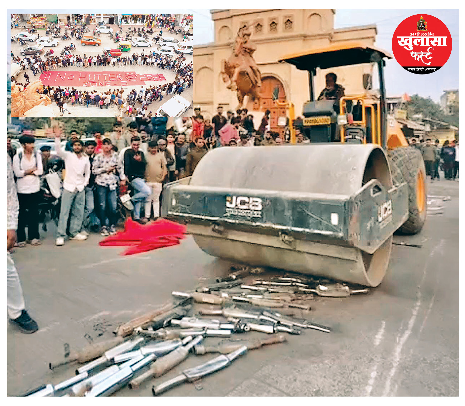 तेज आवाज पर पुलिस का बुलडोजर एक्शन: 101 मॉडिफाइड बुलेट साइलेंसरों पर चला रोड रोलर