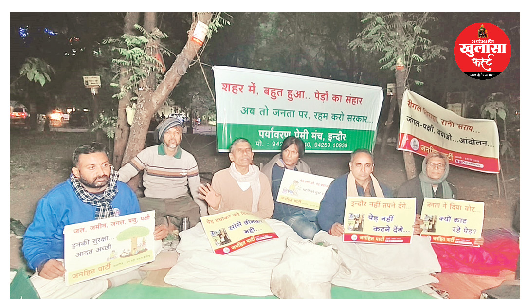 शहर में तेजी से खत्म होती हरियाली को बचाने के लिए गुरुवार देर रात से जनहित पार्टी के नेतृत्व में रीगल तिराहे पर आमरण अनशन शुरू कर दिया गया है। कड़ाके की ठंड के बावजूद पर्यावरण प्रेमी, सामाजिक कार्यकर्ता और जागरूक नागरिक खुले आसमान के नीचे बैठकर पेड़ों की रक्षा की लड़ाई लड़ रहे हैं। आंदोलनकारियों का साफ कहना है कि विकास के नाम पर प्रकृति का गला घोंटना अब बर्दाश्त नहीं किया जाएगा।