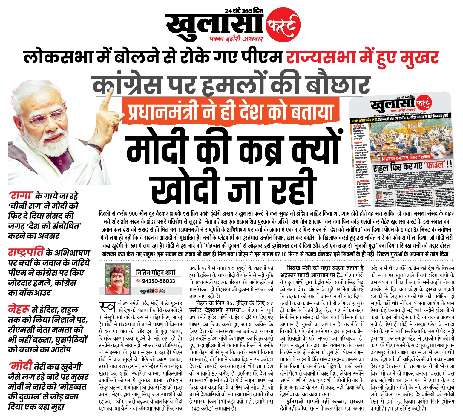 नितिन मोहन शर्मा 94250-56033 खुलासा फर्स्ट, इंदौर।