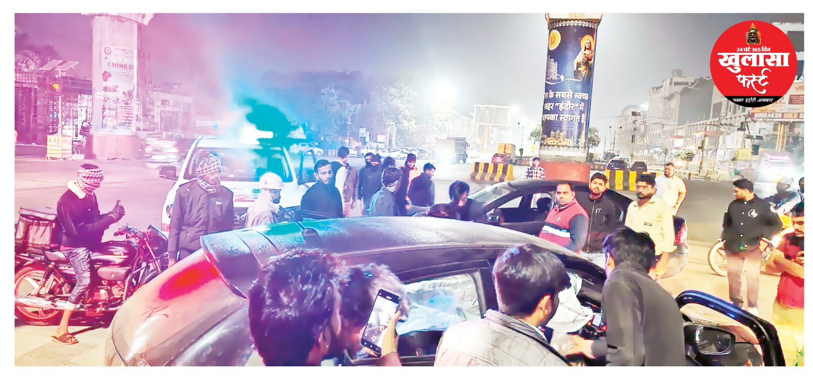 इसी दौरान चौराहे पर दोनों कारें आमने-सामने टकरा गईं। हादसे के समय दोनों वाहनों में सात लोग सवार थे, जिनमें से अधिकांश के नशे में होने की बात सामने आई है। टक्कर इतनी जोरदार थी कि मौके पर अफरा-तफरी मच गई।