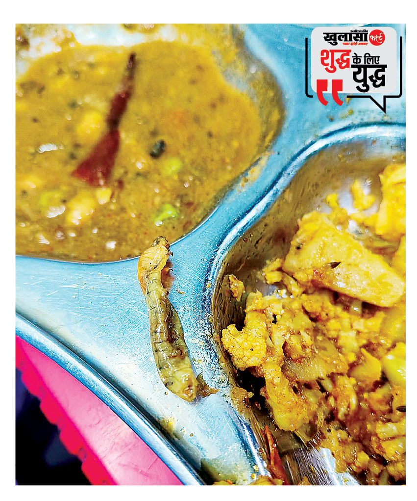 रविदास नगर के दीपक चौहान दोस्तों के साथ पहुंचे थे। आलू-गोभी की सब्जी भी ऑर्डर की। खाना खाते-खाते अचानक उनकी नजर सब्जी पर पड़ी, जहां बड़ी इल्ली दिखाई दी।