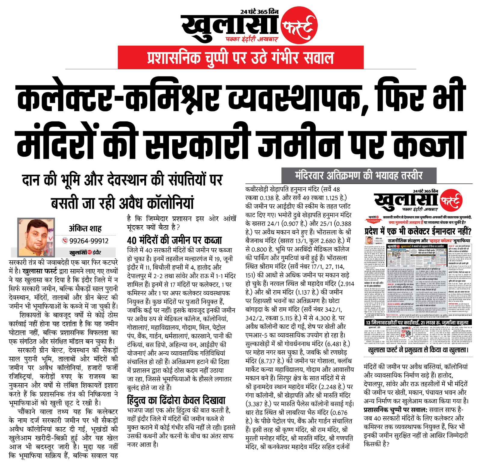 अंकित शाह 99264-99912 खुलासा फर्स्ट, इंदौर।