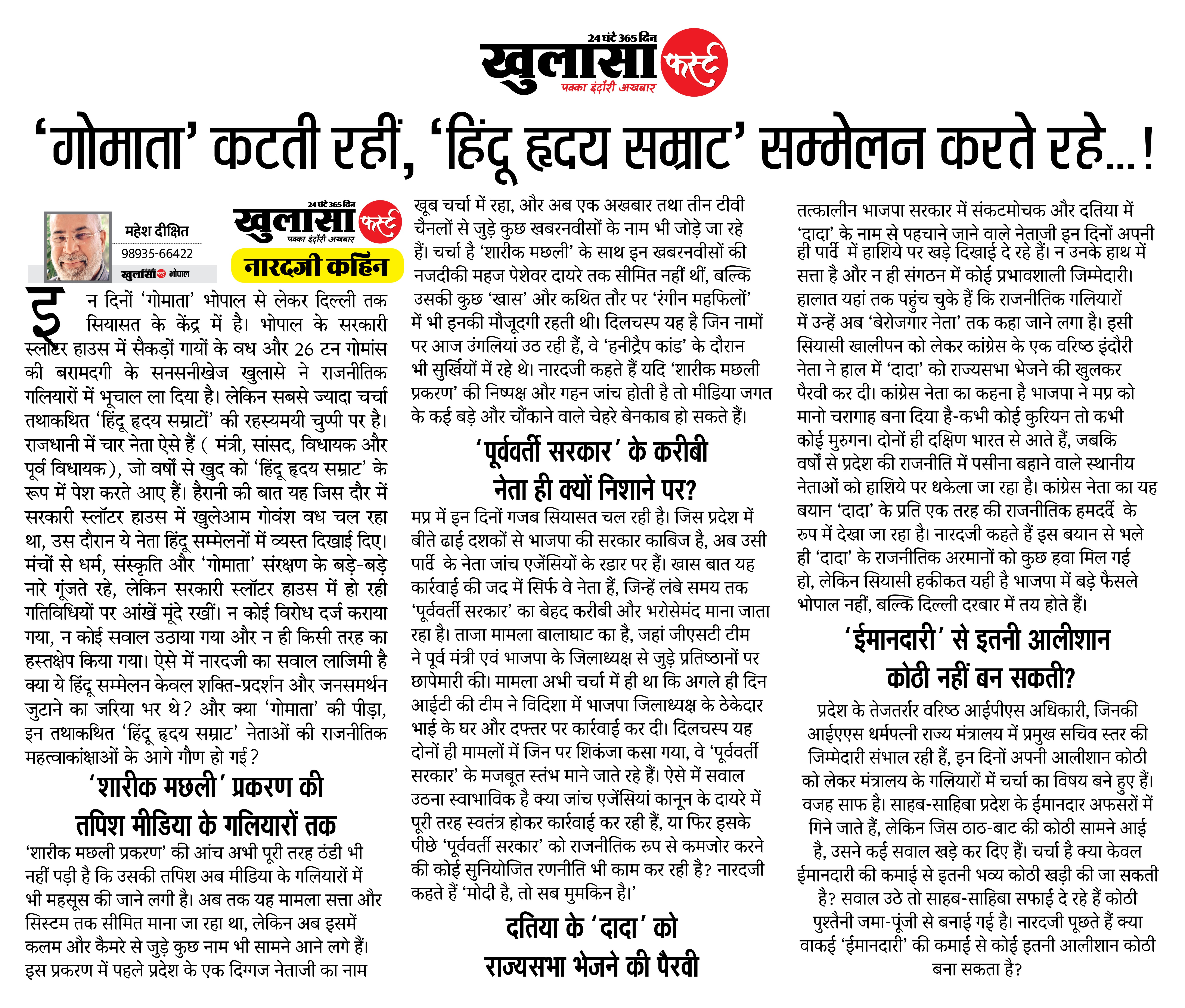महेश दीक्षित 98935-66422 खुलासा फर्स्ट, भोपाल।