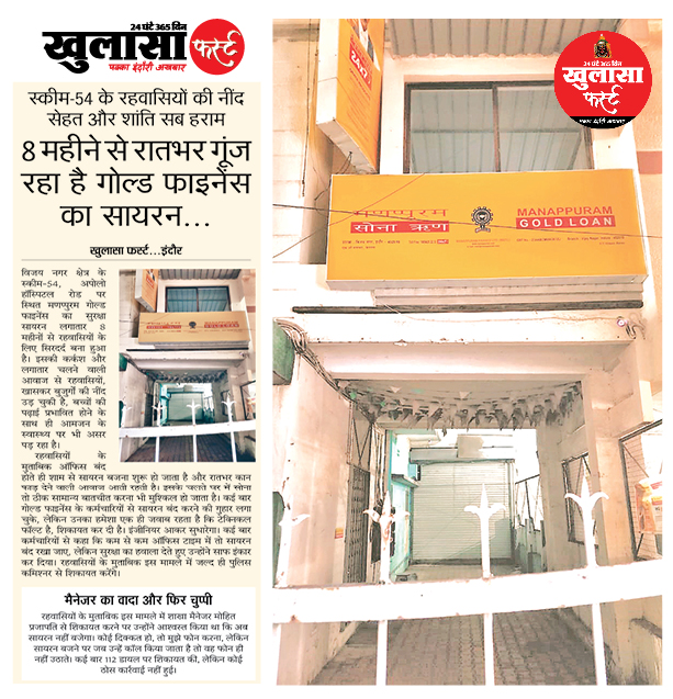 खुलासा फर्स्ट, इंदौर । मणप्पुरम गोल्ड फाइनेंस विजय नगर शाखा, इस समय सुरक्षा नहीं, बल्कि असुरक्षा का केंद्र बन चुकी है। कंपनी अपने ग्राहकों के लाखों-करोड़ों के स्वर्ण आभूषणों को सुरक्षित रखने का दावा त