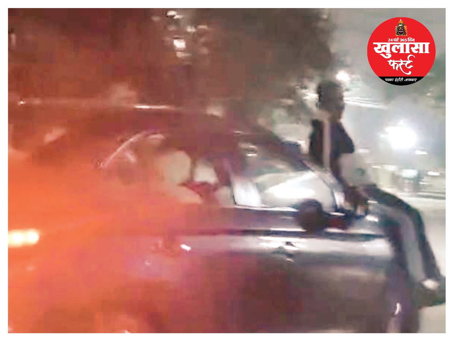 चलती कार के बोनट पर बैठ मौत का स्टंट: पुलिस चेकिंग पॉइंट के सामने बिगड़ैल रईसजादों की अंधी रफ्तार