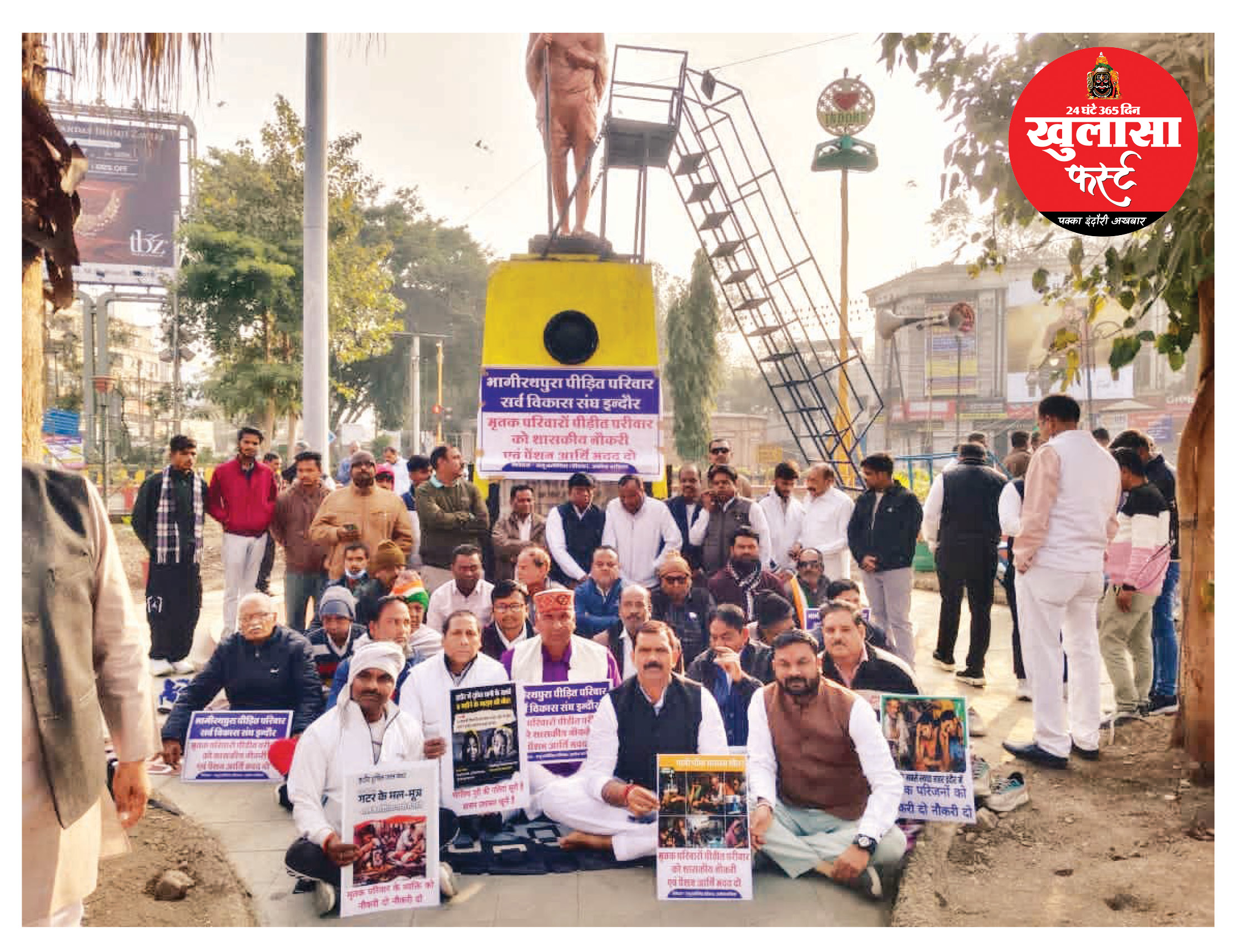 भागीरथपुरा के पीड़ित 30 परिवारों के लिए मांगी नौकरी और पेंशन: गांधी प्रतिमा पर मौन उपवास