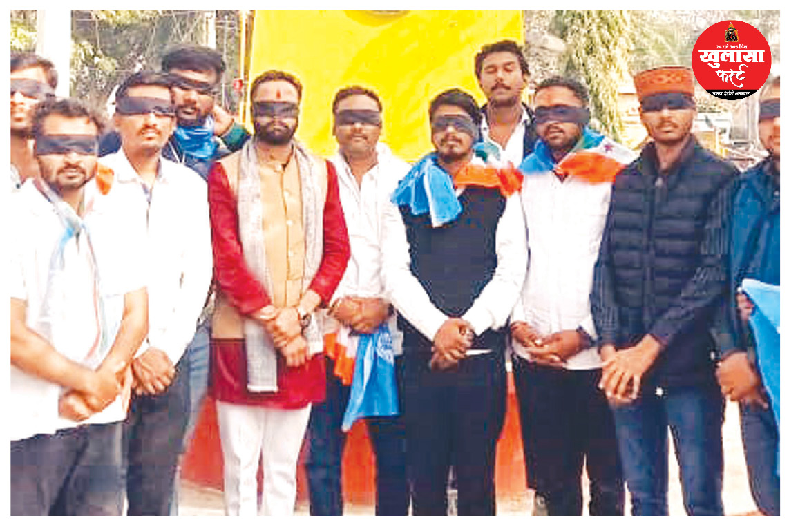 कार्यकर्ताओं ने नगर निगम के भ्रष्टाचार में लिप्त अधिकारियों की ‘बंद आंखें खोलने’ के प्रतीक स्वरूप आंखों पर काली पट्टी बांधी साथ ही यज्ञ कर सद्बुद्धि की कामना की।