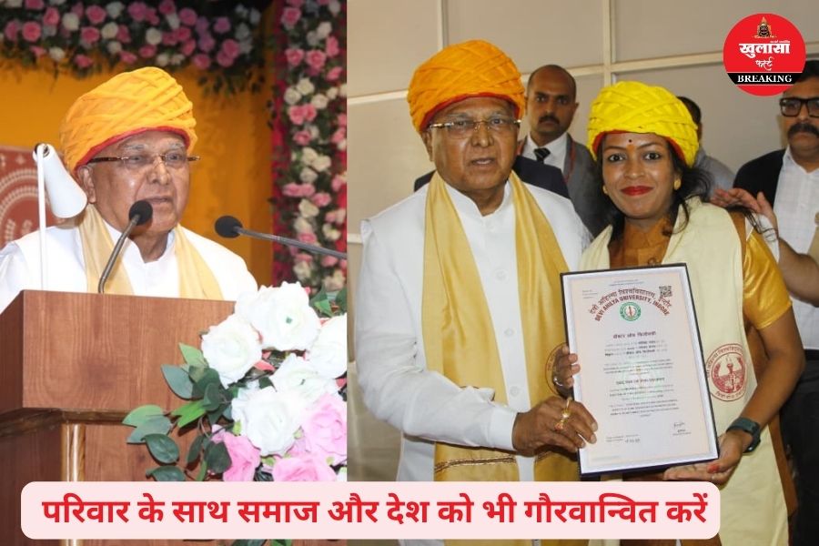 राज्यपाल ने पदक प्राप्त शोधार्थी- विद्यार्थियों को बधाई और शुभकामनाएं देते हुए कहा कि वे देवी अहिल्याबाई के जीवन से सीख लेकर निरंतर आगे बढ़े और अपने परिवार के साथ समाज और देश को भी गौरवान्वित करें। उपाधि केवल कागज का एक टुकड़ा या प्रमाण-पत्र नहीं है। यह उपाधि एक प्रकार से समाज और राष्ट्र को आगे ले जाने की जिम्मेदारी भी है कि हम सेवा भावना से कार्य करते हुए समाज को आगे ले जाए।