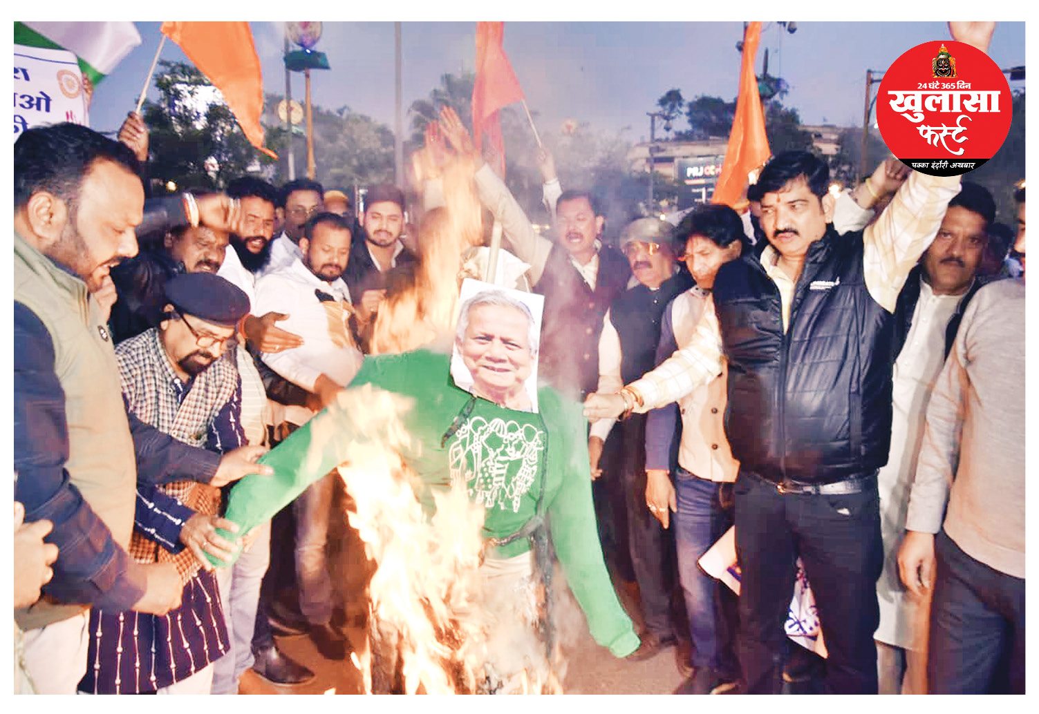बांग्लादेश में हिंदुओं पर हो रहे अत्याचारों के विरोध में अभा क्षत्रिय महासभा एवं राजपूत समाज के विभिन्न संगठनों के कार्यकर्ताओं द्वारा रीगल तिराहे पर बांग्लादेश के राष्ट्रपति मोहम्मद यूनुस का पुतला दहन किया।