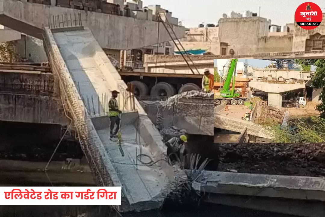 एलिवेटेड रोड का गर्डर गिरा: 35 फीट का हिस्सा नाले में समाया; 1300 करोड़ रुपए की लागत से बन रहा, एक मजदूर घायल
