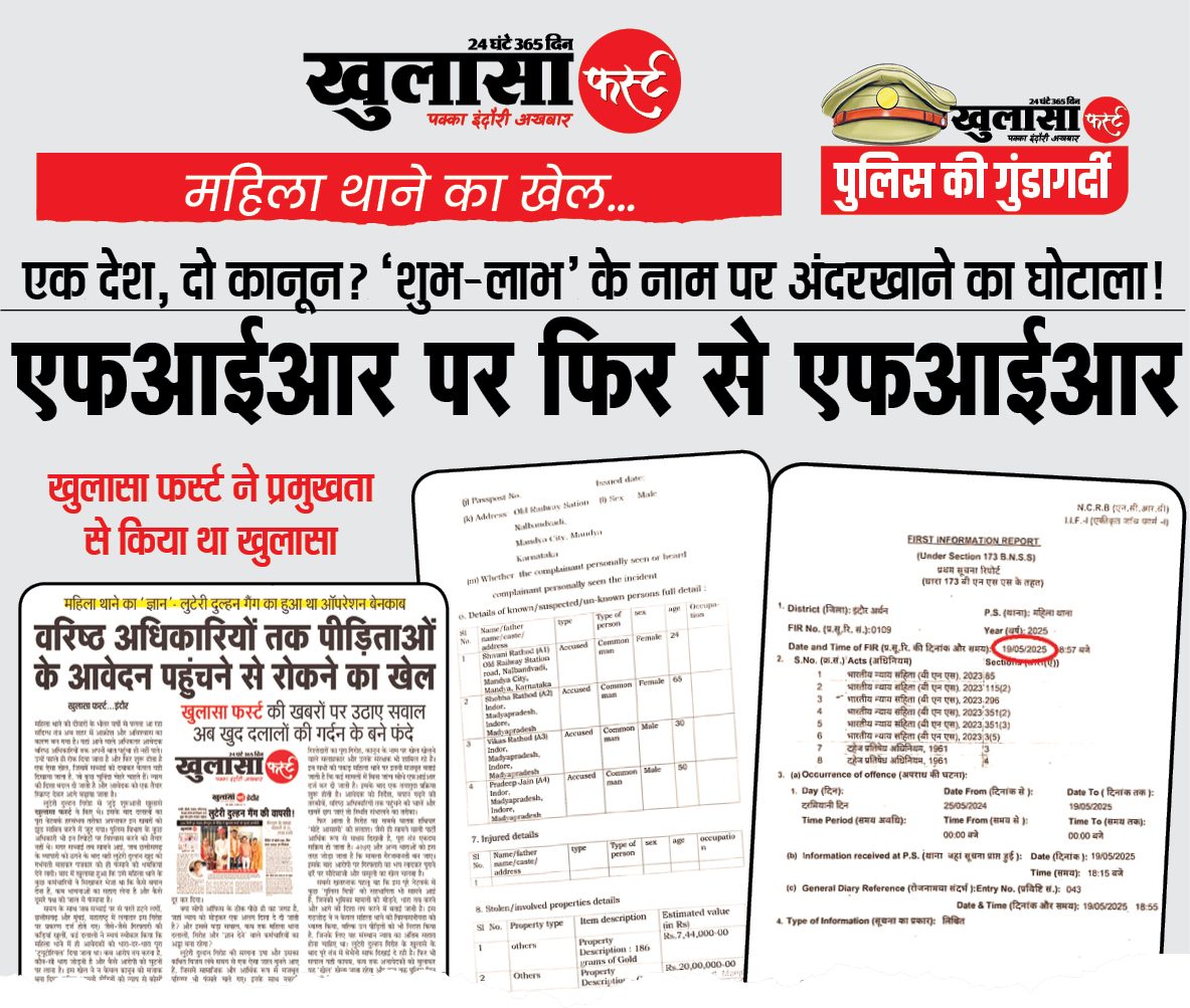 19 मई 2025 को महिला थाना इंदौर ने बिना किसी क्रॉस चेक के बिना दूसरे राज्य की एफआईआर का संज्ञान लिए तुरंत केस दर्ज कर फरियादी को इंदौर बुलाया, फिर गिरफ्तारी की धमकी देकर मोटी रकम लेकर मामला ‘कैसे निपटाना है’, इसकी कथित गाइडलाइन भी दी गई। यह अपने आप में कानून की पूरी मशीनरी पर सवाल खड़ा करती है। क्या सचमुच एक देश के दो राज्यों में दो कानून चल रहे हैं? या फिर ‘शुभ-लाभ’ का खेल कानून पर भारी पड़ रहा है?