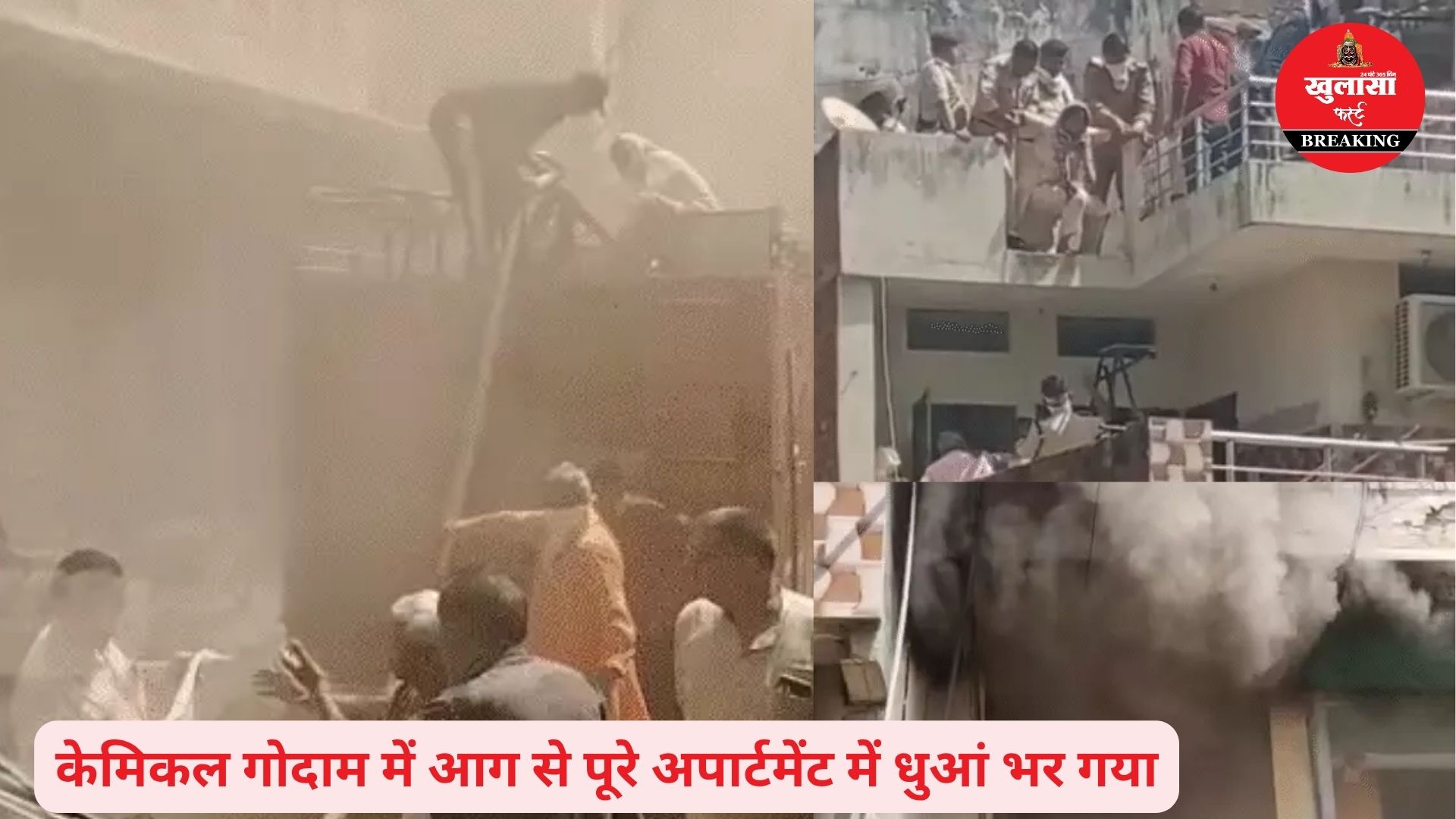 केमिकल गोदाम में आग से हड़कंप: जान बचाने के लिए दूसरी छत पर कूदे लोग; अपार्टमेंट खाली कराया, बाहर निकाले गैस सिलेंडर