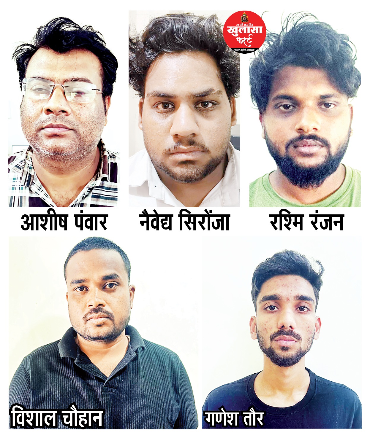 पुलिस टीम ने अलग-अलग राज्यों में दबिश देकर विशाल चौहान (25) निवासी जूना बाजार रोड, माजलगांव, जिला बीड (महाराष्ट्र), गणेश (23) निवासी मुकामपुर पोस्ट हिबरा, तहसील माजलगांव, जिला बीड (महाराष्ट्र), आशीष पंवार (41) निवासी शिवाजी नगर, कोठी रोड, जिला देवास, नैवेद्य सिरोंजा (20) निवासी ग्राम टोककलां, थाना टोंकखुर्द, जिला देवास और रश्मिरंजन (24) निवासी ग्राम माडीपुर, तहसील कनास, जिला पुरी (ओडिशा) को गिरफ्तार किया। अन्य आरोपियों की तलाश भी जारी है।