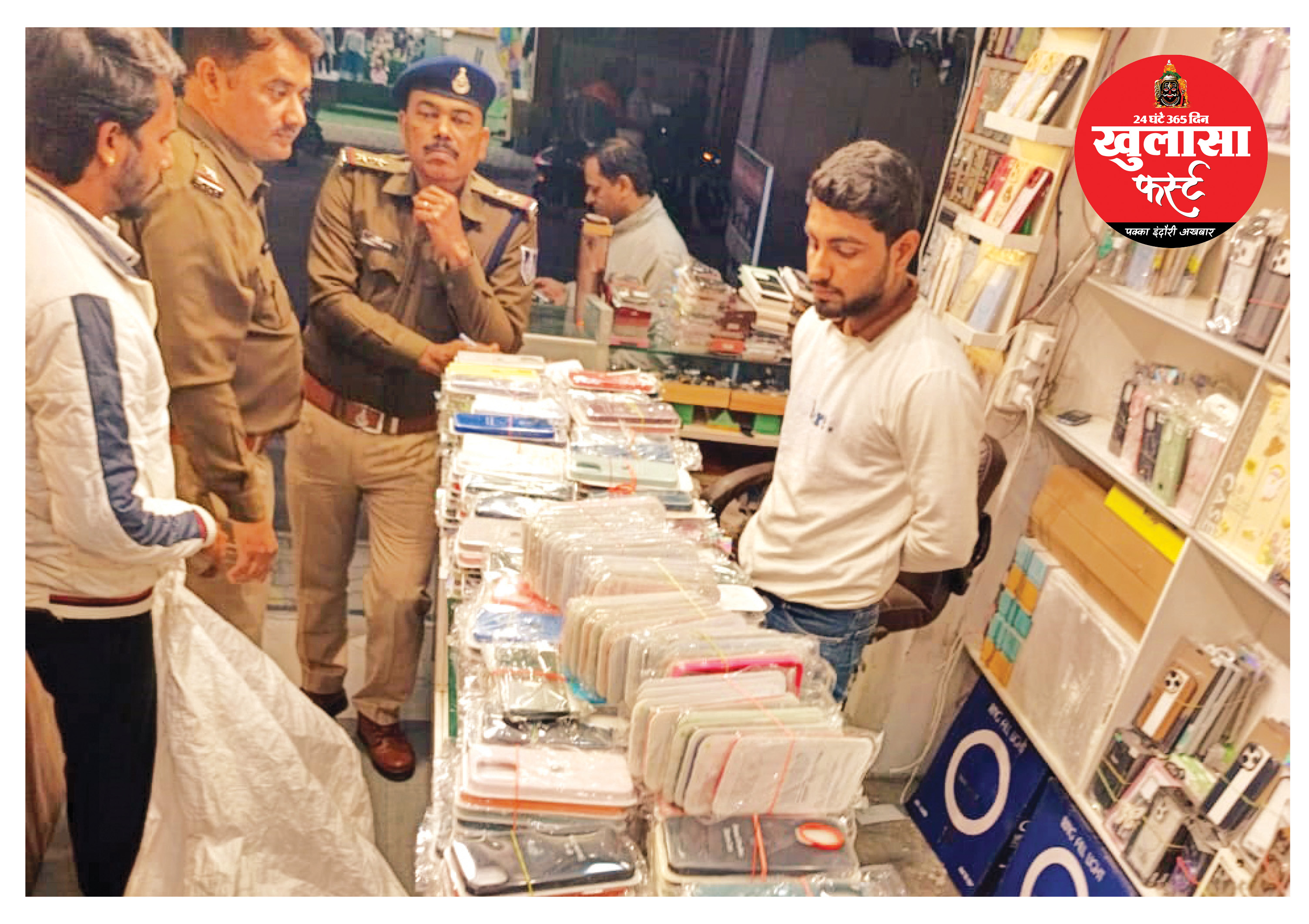 विशाल सिंह निवासी मणि नगर, अहमदाबाद द्वारा आला अधिकारियों को शिकायत की गई थी कि अन्नपूर्णा थाना क्षेत्र के नरेंद्र तिवारी मार्ग स्थित दुकानों पर एप्पल कंपनी के लोगो लगी एसेसरीज की बिक रही है। अन्नपूर्णा थाने की टीम ने पांच दुकानों ओसी मोबाइल, फोन क्राफ्ट्स, एक्सक्लूसिव, एसआर मोबाइल और ए-1 कलेक्शन पर दबिश दी।