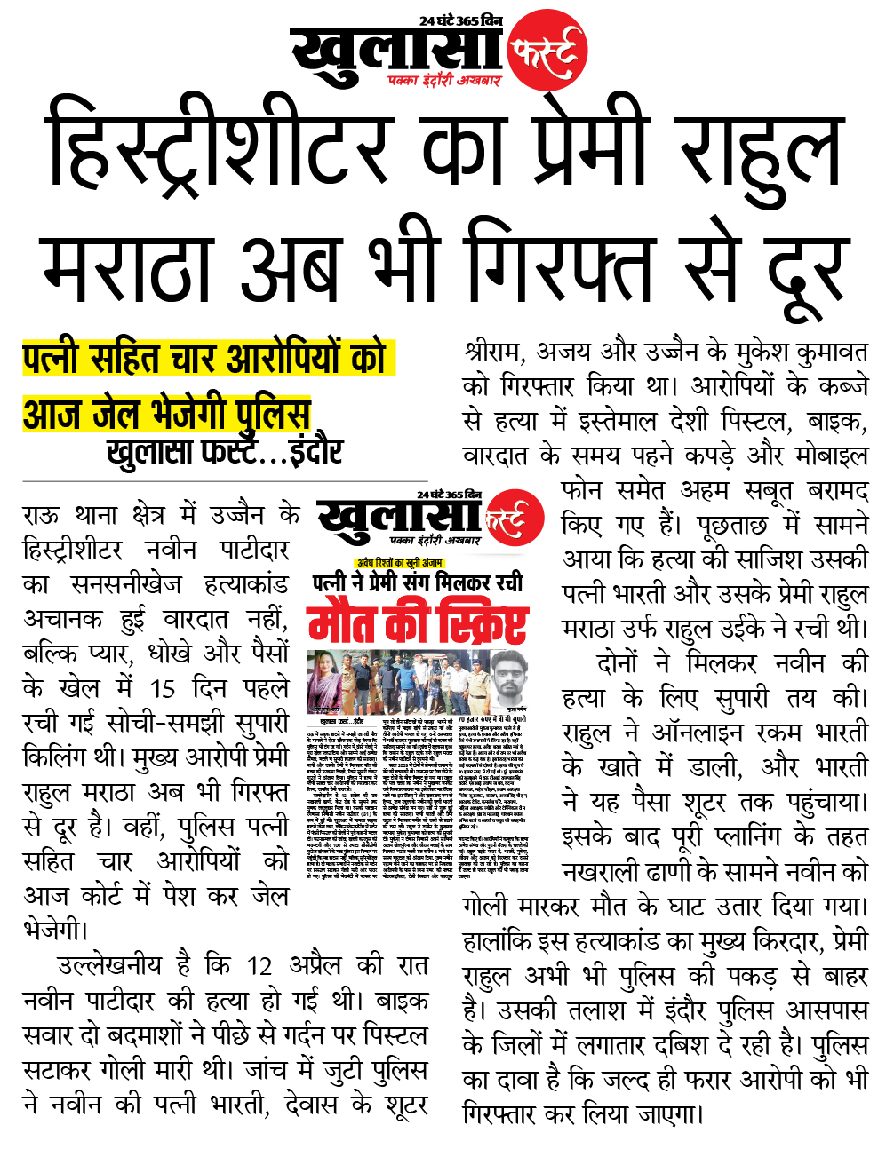 हिस्ट्रीशीटर का प्रेमी राहुल मराठा अब भी गिरफ्त से दूर: पत्नी सहित चार आरोपियों को आज जेल भेजेगी पुलिस