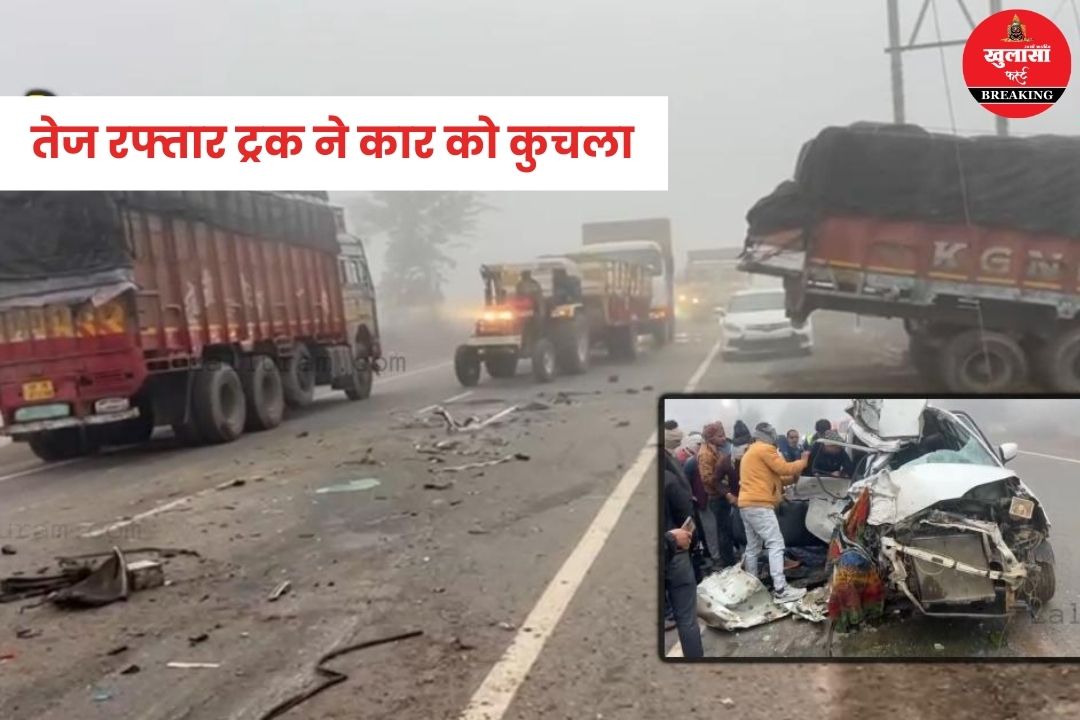 भीषण सड़क हादसा: तेज रफ्तार ट्रक ने कार को कुचला; 4 लोगों की मौत