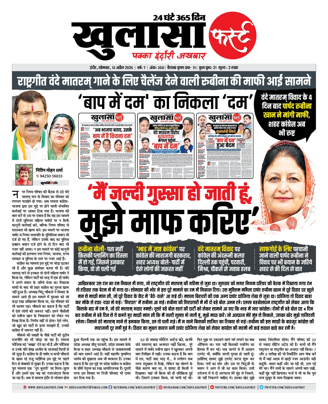 50 से ज्यादा मीटिंग अटेंड की, कभी वंदे मातरम् का अनादर नहीं किया... पूरे मामले में पार्षद रुबीना खान ने खुलकर अपनी बात लिखित में रखी। उनका कहना है कि बाप में दम, पार्टी जाए भाड़ में... ये स्लोगन सब तरफ प्रमुखता से दिखे, लेकिन यह बोलने के पीछे कारण क्या था, ये शायद ही किसी ने दिखाया।