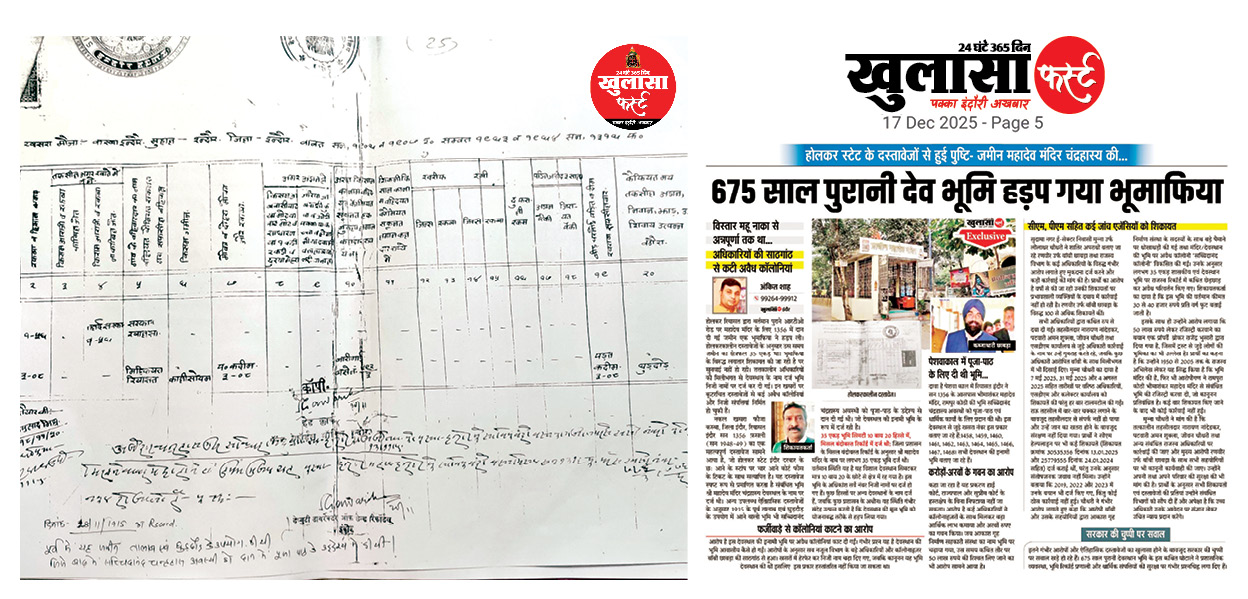 शिवभक्त देवी अहिल्याबाई की नगरी इंदौर स्थित महादेव मंदिर की दान में दी गई भूमि पर बड़े घोटाले का खुलासा हुआ है। आरोप है कि मंदिर की भूमि को पुजारी परिवार और भूमाफियाओं ने मिलकर बेच दिया, जबकि यह देवस्थान और शासकीय रिकॉर्ड में दर्ज थी। ऐसे में ये सवाल प्रमुखता से उठ रहे हैं कि आखिर भूमि का बटांकन कैसे हुआ, निजी नामों पर नामांतरण कैसे किया गया और किसी भी राजस्व अधिकारी को पुराने रिकॉर्ड में देवस्थल भूमि क्यों दिखाई नहीं दी?