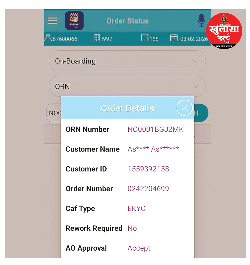 एक उपभोक्ता के अनुसार उन्होंने 2 फरवरी 2025 को जियो फाइबर कनेक्शन बुक किया था। बुकिंग के बाद जियो कर्मचारी मयूर कुशवाहा (मो. 97709 07296) द्वारा 9 फरवरी 2025 को मैसेज भेजकर प्रक्रिया की जानकारी दी गई। ग्राहक का कहना है कि 23 फरवरी तक कई बार जियो कस्टमर केयर में शिकायत दर्ज कराने के बावजूद उनके यहां फाइबर कनेक्शन लगा पाए।
