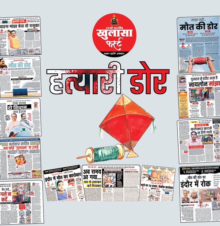 आपके प्रिय पक्का इंदौरी अखबार खुलासा फर्स्ट ने 28 दिसंबर 2024 को पुलिस प्रशासन को आगाह किया था कि मौत के इस मांझे से मुक्ति के लिए सिर्फ चाइना मांझा बेचने वालों के खिलाफ सख्ती से कुछ नहीं होगा। मौत की इस डोर पर सही मायनों में रोक तब ही लगेगी, जब इसका इस्तेमाल करने वालों के खिलाफ भी कानूनी धाराओं के तहत सख्त कार्रवाई हो। इस हत्यारी डोर के विरुद्ध बीते बरस भी त्योहारी दौर में पुलिसिया मुहिम चली थी। तब खुलासा फर्स्ट ने लिखा था कि अब समय आ गया है जब छत से उतारकर ऐसे पतंगबाजों को गिरफ्तार किया जाए, जो इस मांझे का बेखौफ इस्तेमाल कर रहे हैं। बीते साल तो नहीं, लेकिन शुक्र है कि इस साल इस बात की गूंज जिम्मेदारों तक पहुंची। इस साल इस पर अमल की मजबूत तैयारी शुरू हो गई।