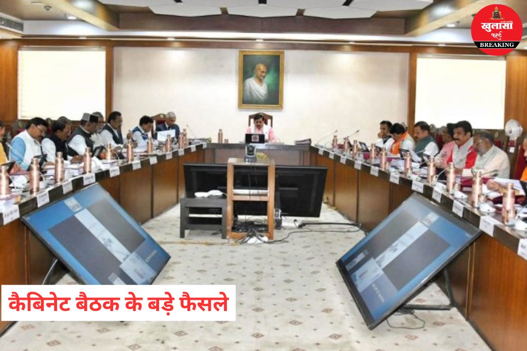 मंगलवार को मुख्यमंत्री डॉ. मोहन यादव की अध्यक्षता में हुई कैबिनेट बैठक में सरकार ने राज्य हित में कई बड़े फैसले लिए हैं, जिसमें किसानों, शिक्षकों, आम नागरिकों और शहरी विकास से जुड़े अहम निर्णयों को मंजूरी दी गई है।
