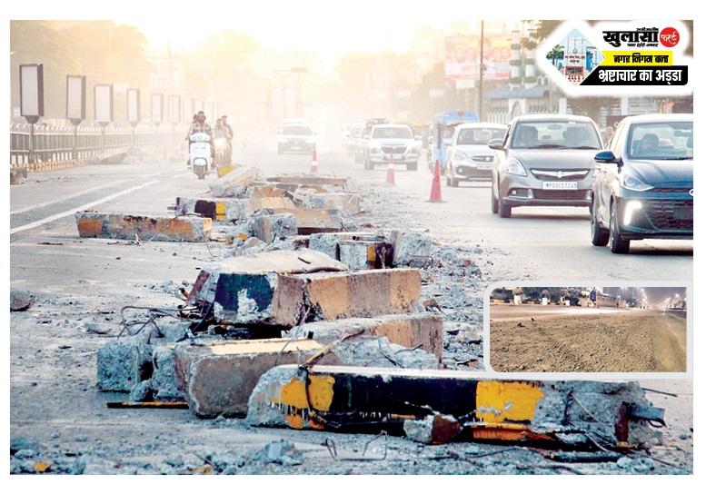 खुलासा की पड़ताल में निगम की गंभीर लापरवाही आई सामने... घटना के बाद खुलासा फर्स्ट की टीम मामले को लेकर बीआरटीएस का दौरा करने पहुंची, जहां देखा कि टुकड़े-टुकड़े में एक तरफ की रेलिंग निगम द्वारा हटाई हुई थी। हटाई हुई रेलिंग सड़क किनारे पड़ी हुई थी तो कई जगह दूसरी तरफ की रेलिंग तरफ पड़ी हुई थी। जहां-जहां की रेलिंग हटाई गई है वहां पत्थर-कंकर सड़क पर फैले पड़े थे।