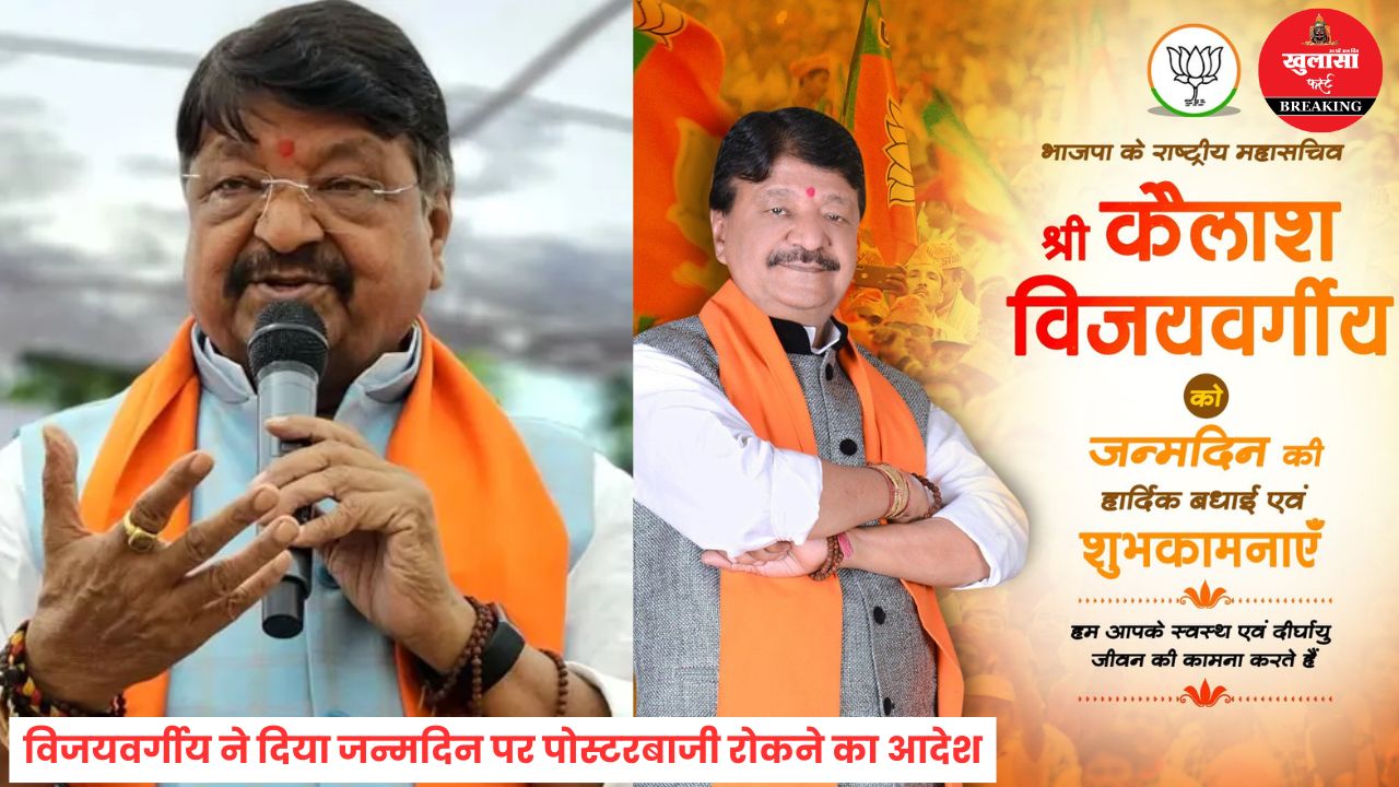 मध्यप्रदेश के नगरीय प्रशासन मंत्री कैलाश विजयवर्गीय ने अपने जन्मदिन के मौके पर पोस्टरबाजी को लेकर सख्त रुख अपनाया है। उन्होंने स्पष्ट निर्देश दिए हैं कि उनके जन्मदिन पर शहर में कहीं भी पोस्टर या बैनर लगाए गए मिलें तो इंदौर नगर निगम उन्हें तत्काल हटाए।