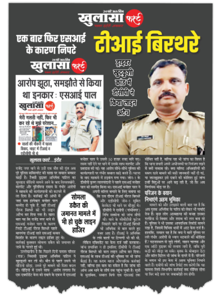 एक बार फिर एसआई के कारण निपटे टीआई बिरथरे: ड्राइवर खुदकुशी कांड में डीसीपी ने किया लाइन अटैच; सोमला डकैत की जमानत मामले में भी हो चुके लाइन हाजिर