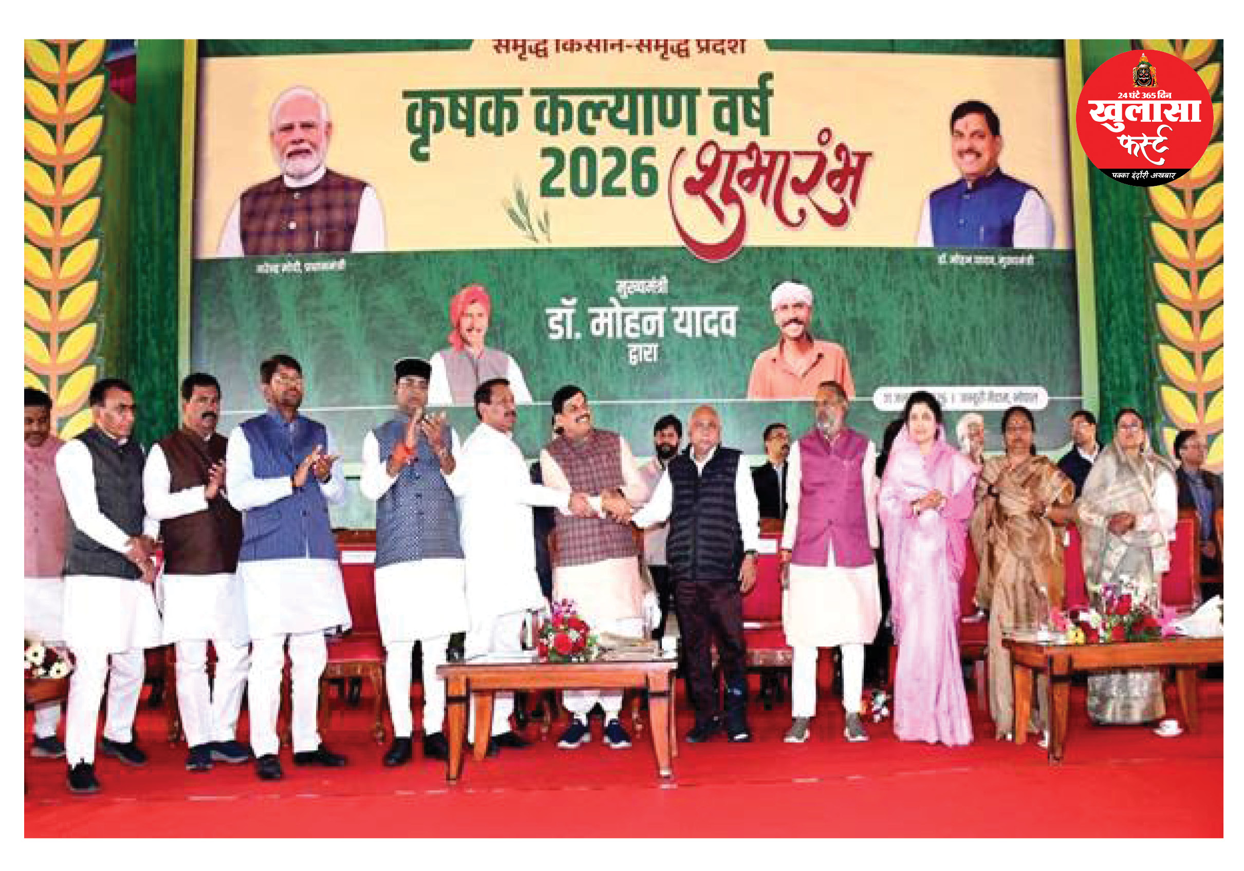 मुख्यमंत्री डॉ. यादव ने रविवार को भोपाल के जंबूरी मैदान में आयोजित विशाल किसान सम्मेलन में वर्ष 2026 को “कृषक कल्याण वर्ष” के रूप में मनाने की अधिकृत घोषणा की।