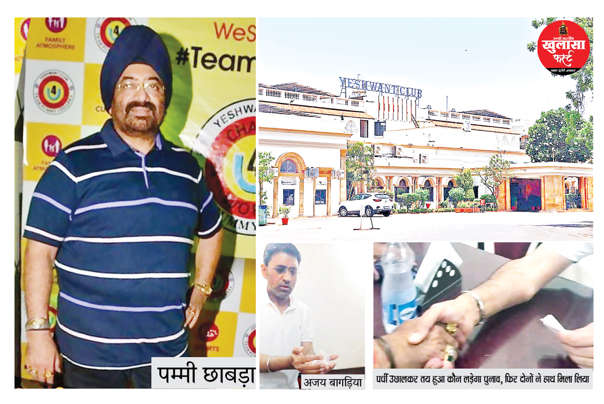शहर के ऐतिहासिक और प्रतिष्ठित यशवंत क्लब के आगामी मैनेजिंग कमेटी चुनाव को लेकर चल रही गहमागहमी के बीच रविवार को बड़ा और रोचक घटनाक्रम सामने आया। चेयरमैन पद के दो प्रमुख दावेदार पम्मी छाबड़ा और वरिष्ठ अधिवक्ता अजय बागड़िया के बीच आखिरकार समझौता हो गया।