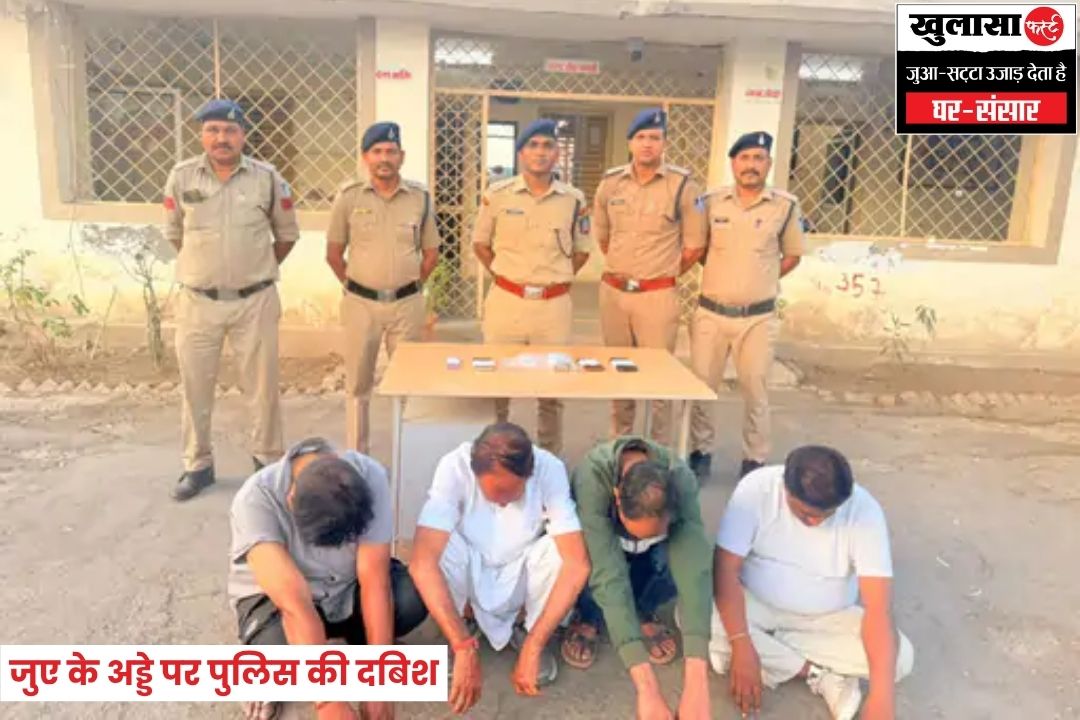 जुए के अड्डे पर पुलिस की दबिश: 4 जुआरियों को रंगे हाथ पकड़ा; नकदी और मोबाइल जब्त