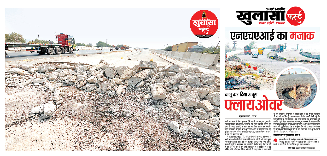 लोगों की जान जोखिम में डालने की कोई बात नहीं है। चलती सडक़ पर ठेकेदार कहां खुदाई कर रहा है, मैं पता करवाता हूं। प्रोजेक्ट मैनेजर रामेंद्रसिंह सिसौदिया ने कहा कि हम पर ट्रैफिक शुरू करने का भारी दबाव था। जिस तरफ का ट्रैफिक अभी चल रहा है, वहां ट्रांजिट स्लैब की आवश्यकता नहीं थी।