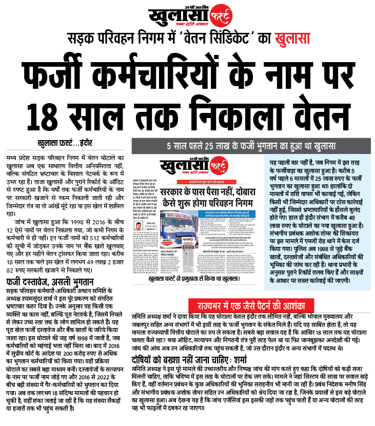 मध्य प्रदेश सड़क परिवहन निगम में वेतन घोटाले का खुलासा अब एक साधारण वित्तीय अनियमितता नहीं, बल्कि संगठित भ्रष्टाचार के विशाल नेटवर्क के रूप में उभर रहा है।