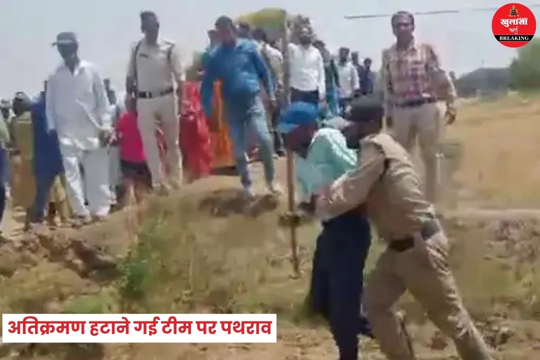 सरकारी जमीन से अतिक्रमण हटाने पहुंची प्रशासनिक टीम पर हमला हो गया। अतिक्रमणकारियों ने न सिर्फ हंगामा किया, बल्कि टीम के साथ धक्का-मुक्की करते हुए जेसीबी मशीन पर पत्थर बरसा दिए।