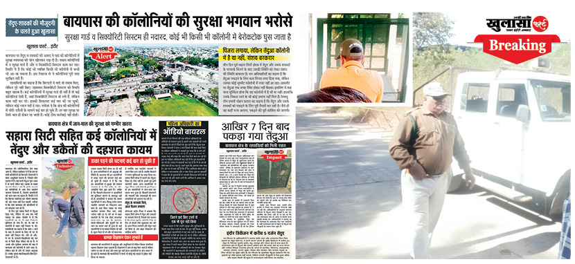 खुलासा फर्स्ट बायपास की कॉलोनियों की सुरक्षा को लेकर लगातार कर रहा खुलासा... देश के सबसे स्वच्छ शहर की बायपाास की कॉलोनियो में तेंदुए की मूवमेंट से सुरक्षा को खतरा बढ़ गया है। इस मामले का खुलासा फर्स्ट ने प्रमुखता से खुलासा किया था। इसके बाद ही वन विभाग का अमला सक्रिय हुआ और एक तेंदुए को पकड़ने में सफल रहा है। अब जब वन विभाग ने सर्चिंग की तो एक और तेंदुए का खुलासा हो गया है।