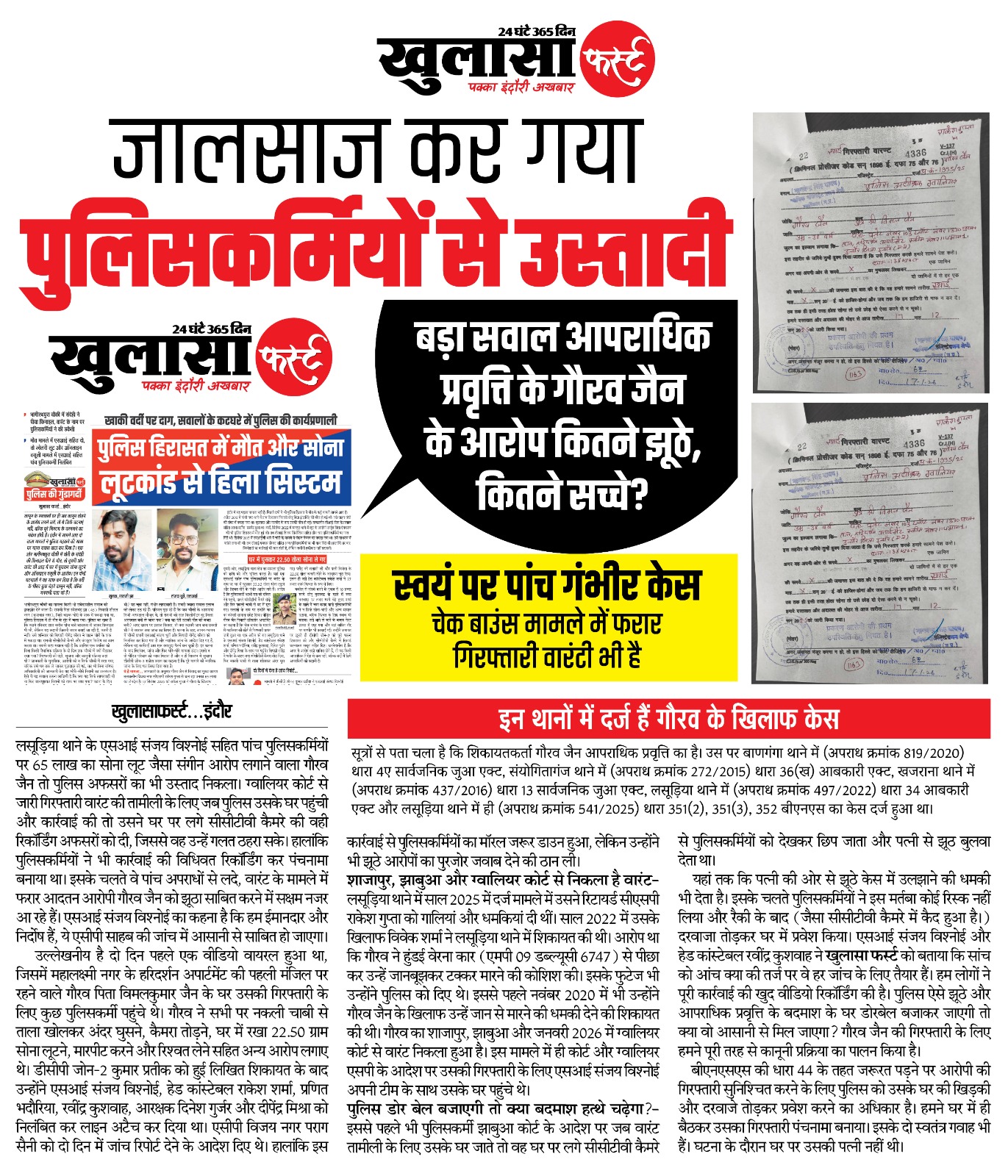 जालसाज कर गया पुलिसकर्मियों से उस्तादी: बड़ा सवाल आपराधिक प्रवृत्ति के गौरव जैन के आरोप कितने झूठे, कितने सच्चे