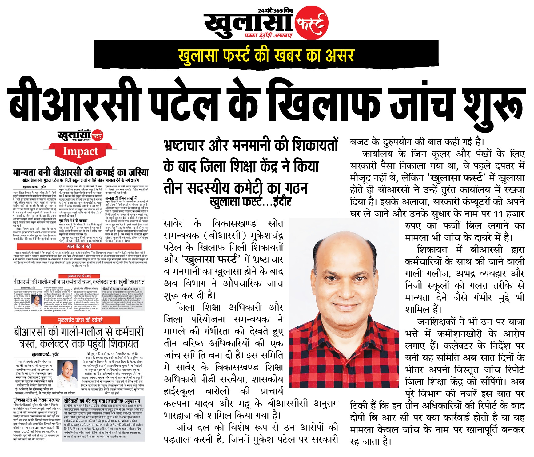 खुलासा फर्स्ट की खबर का असर: बीआरसी पटेल के खिलाफ जांच शुरू