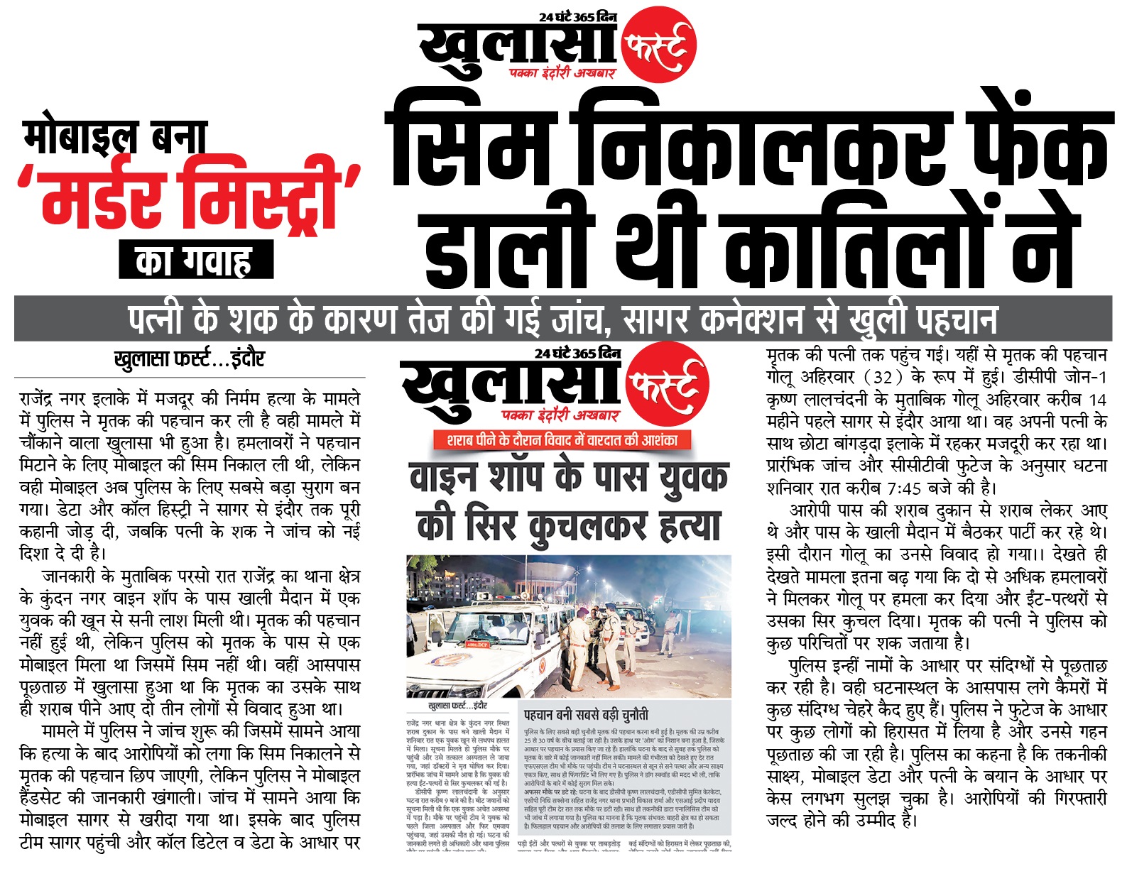 राजेंद्र नगर इलाके में मजदूर की निर्मम हत्या के मामले में पुलिस ने मृतक की पहचान कर ली है वही मामले में चौंकाने वाला खुलासा भी हुआ है। हमलावरों ने पहचान मिटाने के लिए मोबाइल की सिम निकाल ली थी, लेकिन वही मोबाइल अब पुलिस के लिए सबसे बड़ा सुराग बन गया। डेटा और कॉल हिस्ट्री ने सागर से इंदौर तक पूरी कहानी जोड़ दी, जबकि पत्नी के शक ने जांच को नई दिशा दे दी है।