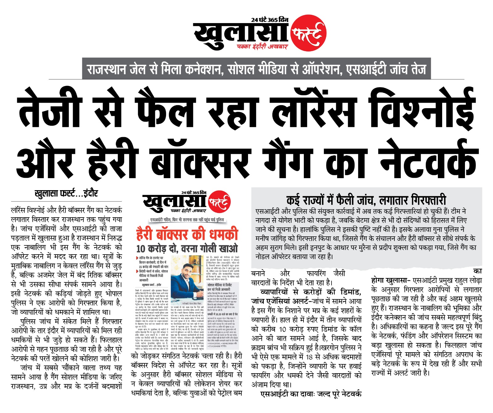 जांच में सबसे चौंकाने वाला तथ्य यह सामने आया है गैंग सोशल मीडिया के जरिए राजस्थान, उप्र और मप्र के दर्जनों बदमाशों को जोड़कर संगठित नेटवर्क चला रही है। हैरी बॉक्सर विदेश से ऑपरेट कर रहा है।