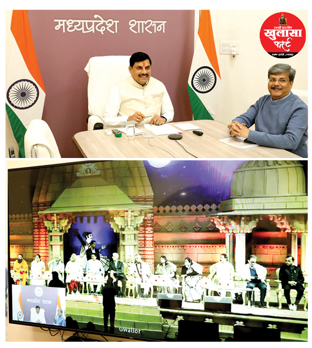 ऐतिहासिक ग्वालियर दुर्ग से पूरी दुनिया को शून्य का परिचय करा रहे “चतुर्भुज मंदिर” की थीम पर तानसेन समाधि परिसर में बने भव्य एवं आकर्षक मंच पर सोमवार की सांध्य बेला में मुख्यमंत्री डॉ. मोहन यादव के वर्चुअल मुख्य आतिथ्य में शास्त्रीय संगीत के क्षेत्र में देश एवं दुनिया के सर्वाधिक प्रतिष्ठित महोत्सव तानसेन समारोह का भव्य शुभारंभ हुआ।