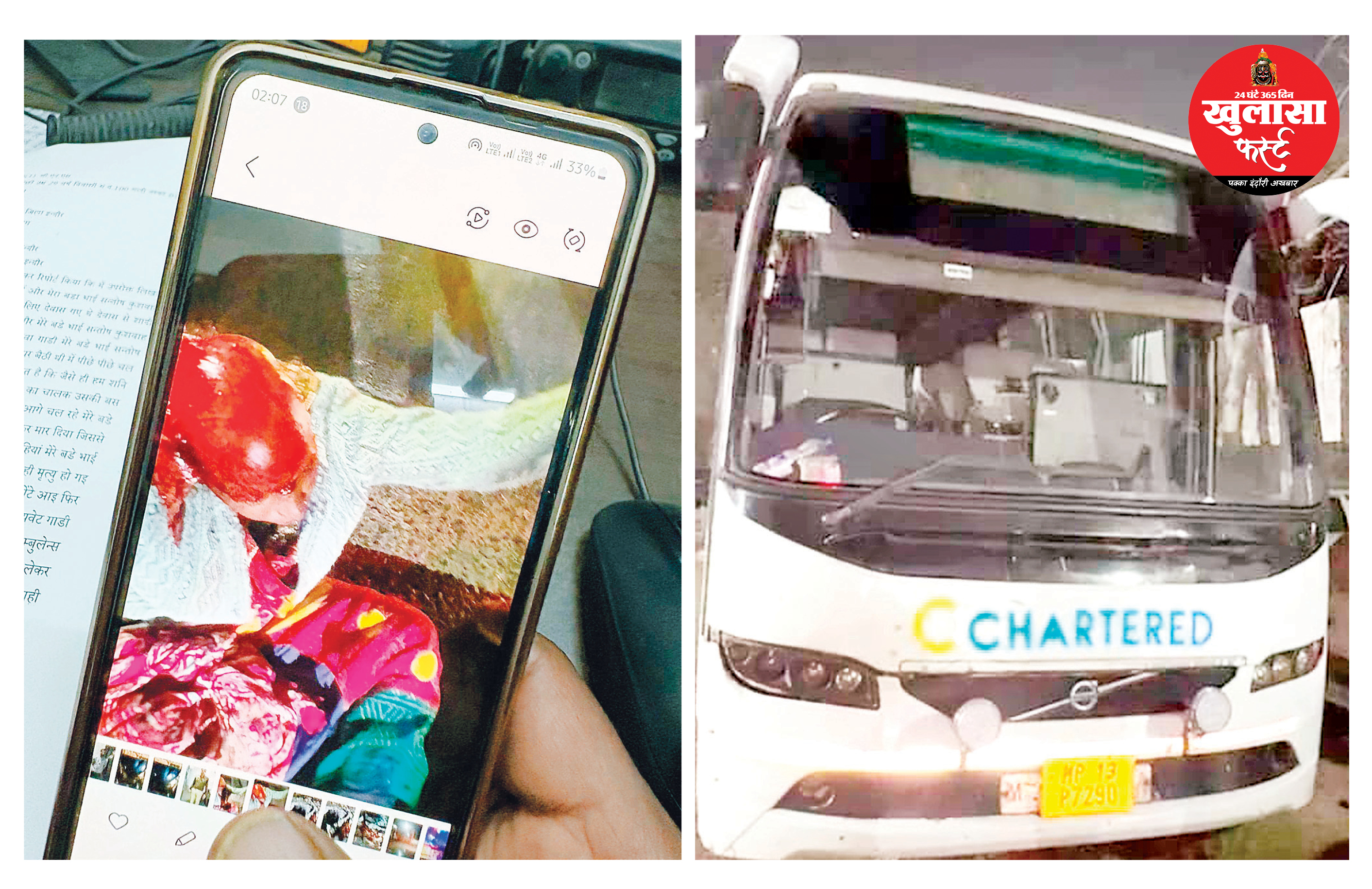 रात को लौट रहे थे। वह अपनी बाइक तथा भाई-भाभी अपनी एक्टिवा एमपी41 झेडडी 7386 पर थे। रात करीब 11.15 बजे एबी रोड मांगलिया में शनि मंदिर के पास पीछे से आई चार्टर्ड बस एमपी 13 पी 7290 मुझे ओवरटेक कर निकली और आगे चल रहे भाई-भाभी की एक्टिवा को टक्कर मार दी।