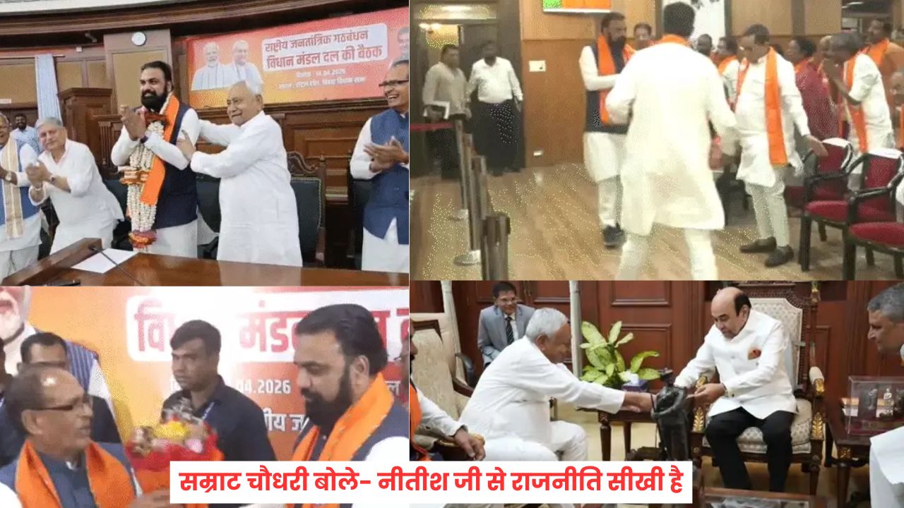 आज ही एनडीए विधायक दल की संयुक्त बैठक में मुख्यमंत्री के नाम पर अंतिम निर्णय लिया गया। इसमें सम्राट चौधरी के नाम पर मुहर लगी। चौधरी ने इस अवसर कहा कि मैंने नीतीश जी से राजनीति सीखी है। वे बोले- उनके साथ मैंने काम किया है। अब उनके समृद्ध बिहार को और आगे ले जाना है। बैठक में उनके प्रस्तावक नीतीश कुमार ही बने। सम्राट ने भी पैर छूकर उनका आशीर्वाद लिया।