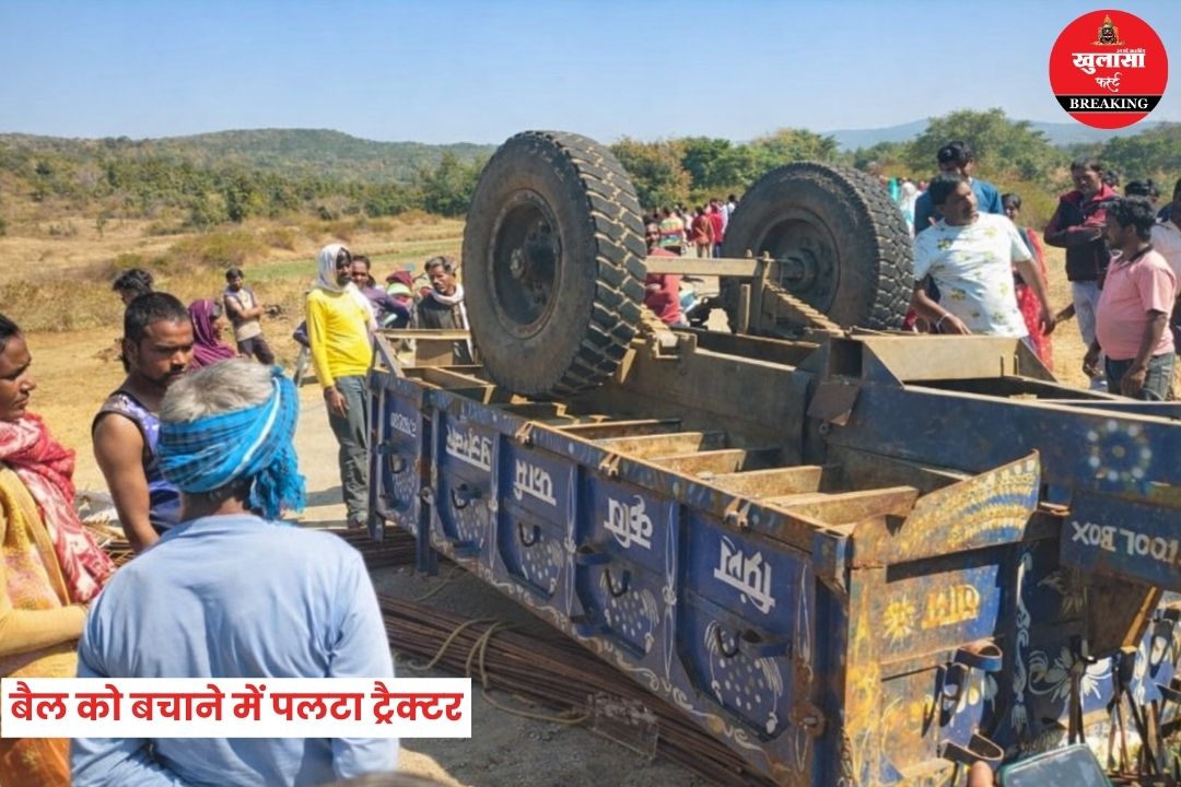 दोपहर करीब डेढ़ बजे, अचानक सड़क पर एक बैल सामने आ गया। बैल को बचाने के प्रयास में चालक ट्रैक्टर से नियंत्रण खो बैठा और भारी सामान से लदा ट्रैक्टर सड़क किनारे पलट गया।