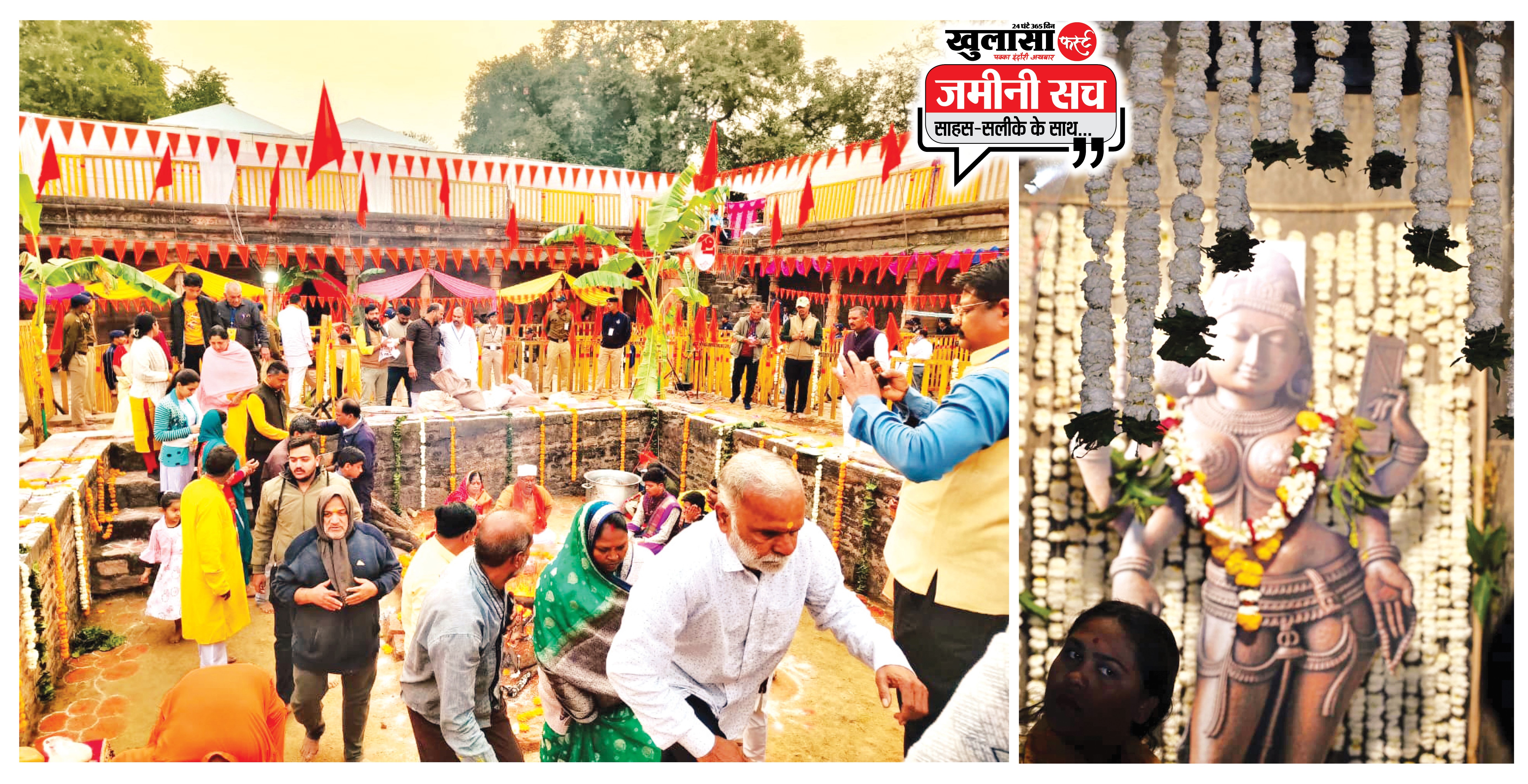 केसरिया पताकाओं और फूलों से सजी समूची भोजशाला, मातृशक्ति ने उकेरी सैकड़ों रंगोलियां