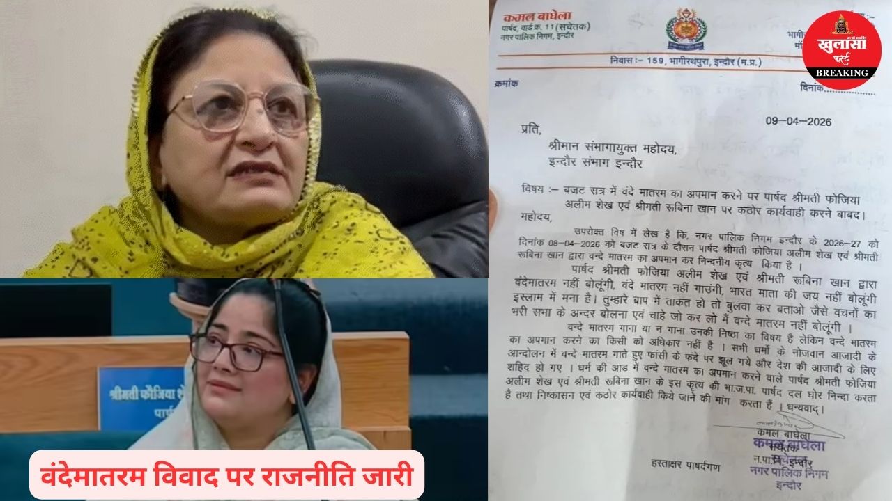 वार्ड 11 के पार्षद कमल वाघेला के नेतृत्व में दिए गए ज्ञापन में आरोप लगाया गया कि बजट सत्र के दौरान कांग्रेस पार्षद फौजिया शेख अलीम और रुबीना इकबाल खान ने ‘वंदे मातरम्’ गाने से इनकार करते हुए उसका अपमान किया। ज्ञापन में यह भी कहा गया कि दोनों पार्षदों द्वारा सदन में आपत्तिजनक और चुनौतीपूर्ण बयान दिए गए, जिससे माहौल तनावपूर्ण हो गया।