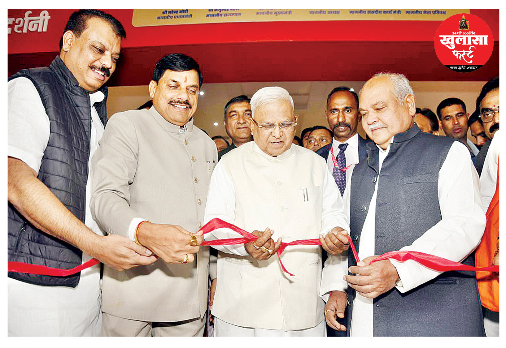 राज्यपाल मंगुभाई पटेल, विधानसभा अध्यक्ष नरेंद्रसिंह तोमर, मुख्यमंत्री डॉ. मोहन यादव एवं नेता प्रतिपक्ष उमंग सिंगर ने विधानसभा परिसर में ‘मध्यप्रदेश विधानसभा के 1956 से 2025 तक इतिहास के पल’ और ‘मुख्यमंत्री डॉ. मोहन यादव का अभ्युदय मध्यप्रदेश विकास और सेवा के दो वर्ष’ विषय पर लगी प्रदर्शनी का शुभारंभ किया।